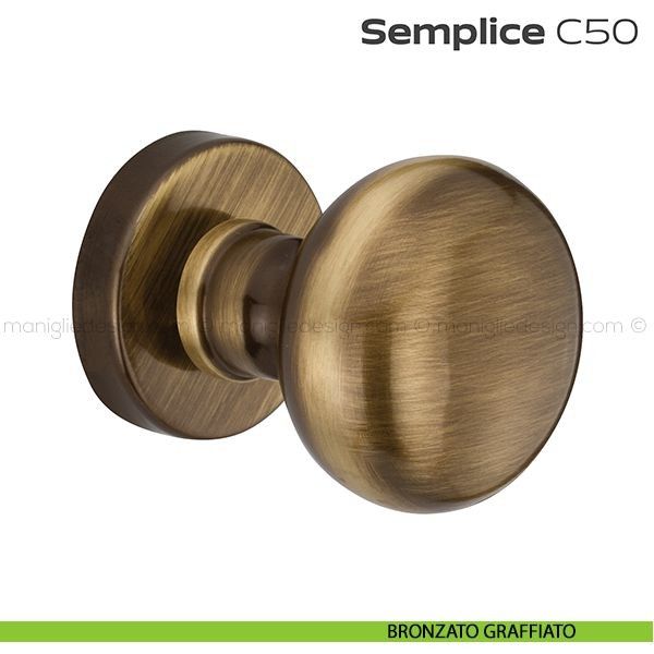 Pomolo tondo per porta fisso C50 Semplice Reguitti con rosetta tonda senza bocchette. Design by Studio Reguitti.