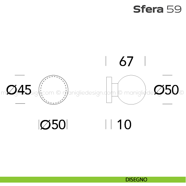 Pomolo fisso diametro 50 mm per porta 59 Sfera Reguitti con rosetta tonda