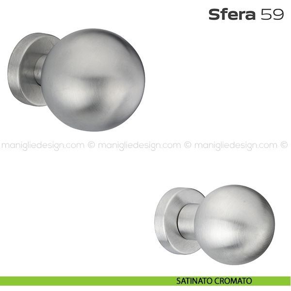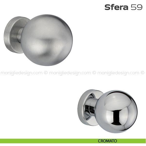 Pomolo fisso diametro 60 mm per porta 59 Sfera Reguitti con rosetta tonda diametro 45 mm a pressione senza bocchette.