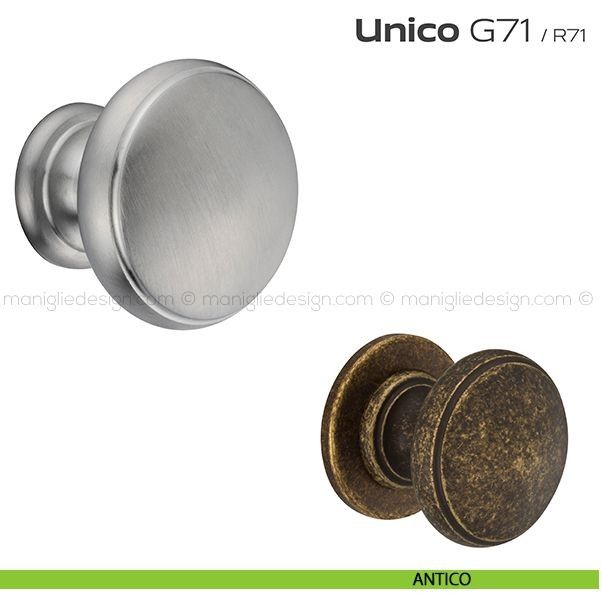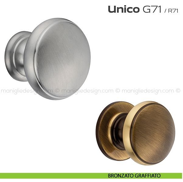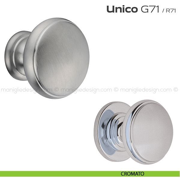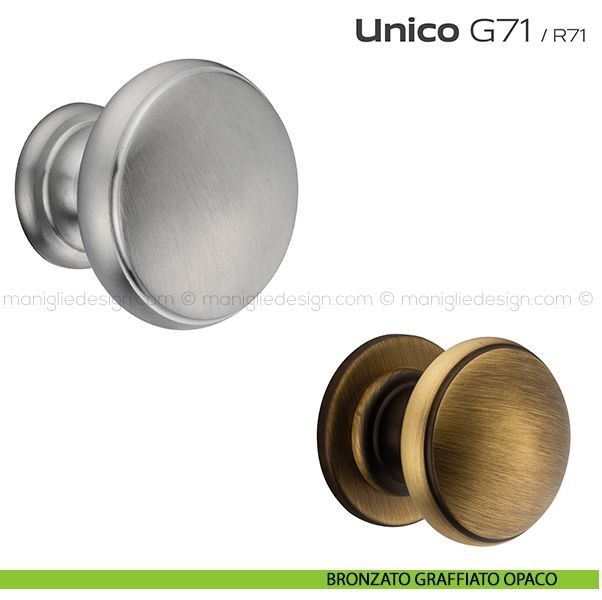 Unico Reguitti viene offerta anche nella variante pomolo fisso con rosetta. Scopri la gamma completa Reguitti G71 Unico per completare con stile il tuo arredamento.