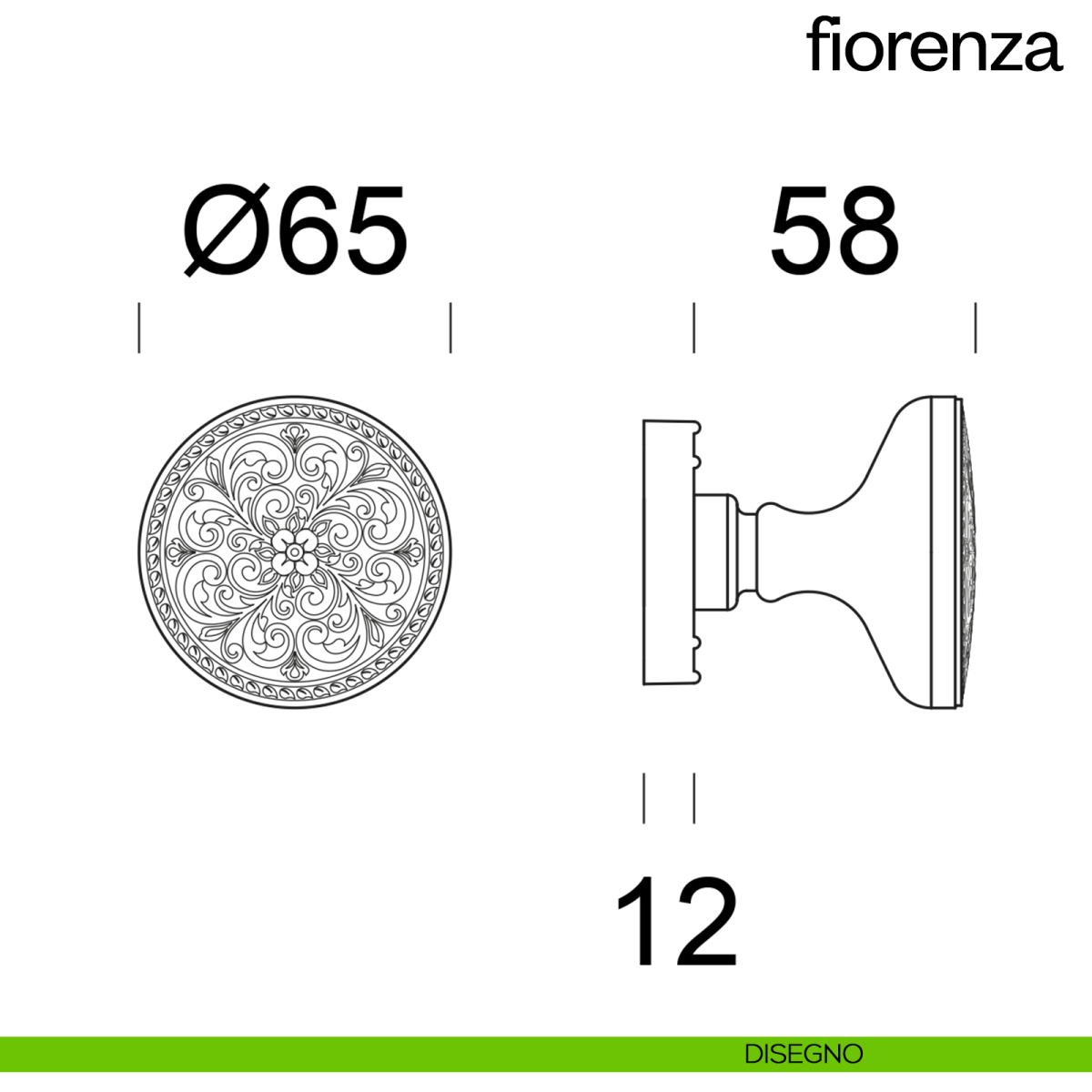 Pomello per porta Fiorenza fisso dnd su rosetta tonda ø55 mm senza bocchetta.
