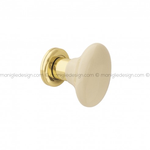 Pomello in porcellana beige scuro per porta Epoque girevole Poggi Mariani su rosetta tonda senza bocchetta.