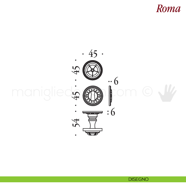 Maniglia per porta interna Roma Antologhia con rosetta e bocchetta tonda senza molla di ritorno.