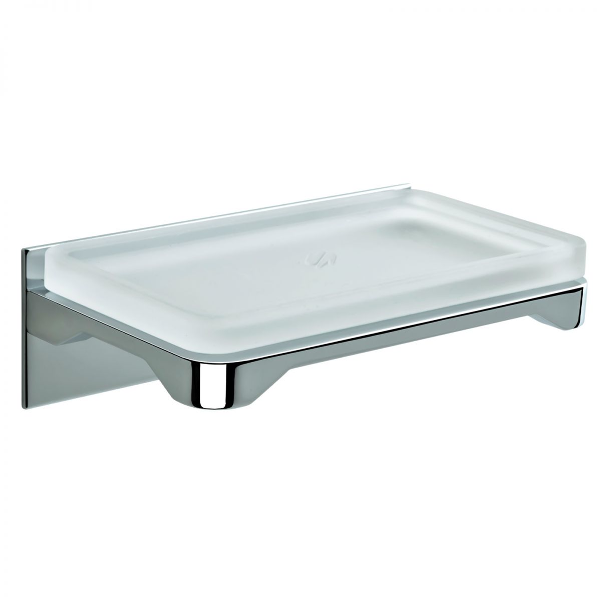 Porta sapone d'appoggio Colombo Design Forever finitura cromo con vetro acidato naturale.