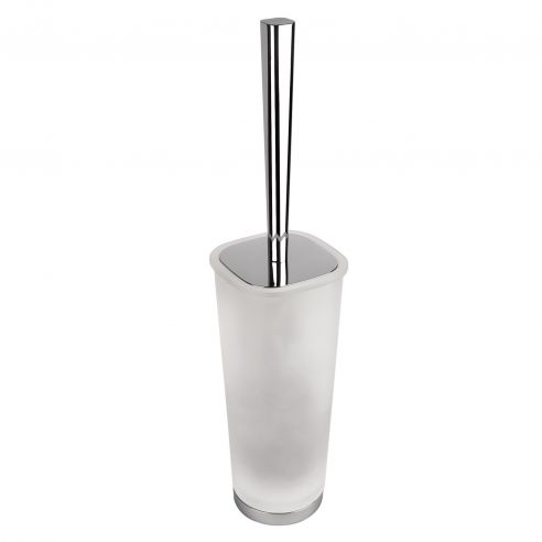 Porta scopino d'appoggio Colombo Design Alizè finitura cromo con vetro acidato naturale.
