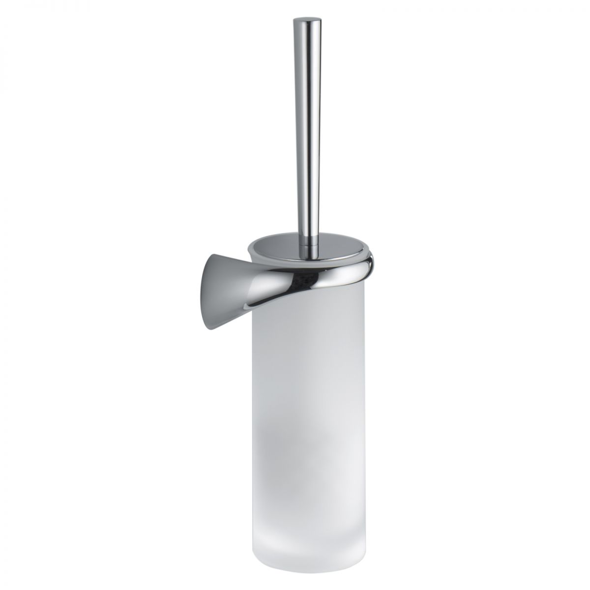 Porta scopino sospeso Colombo Design Link finitura cromo con vetro acidato naturale. Design by Angeletti Ruzza.