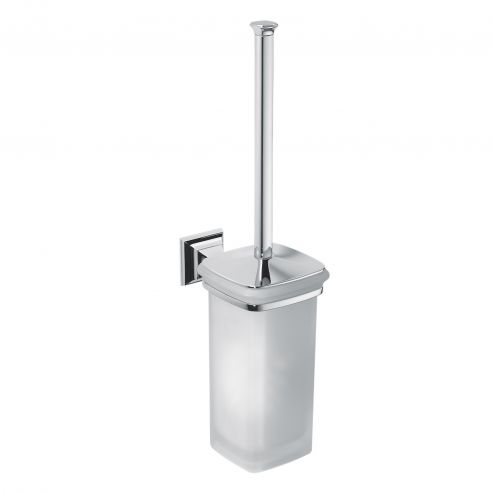 Porta scopino da appoggio Colombo Design Portofino finitura cromo con vetro acidato naturale.