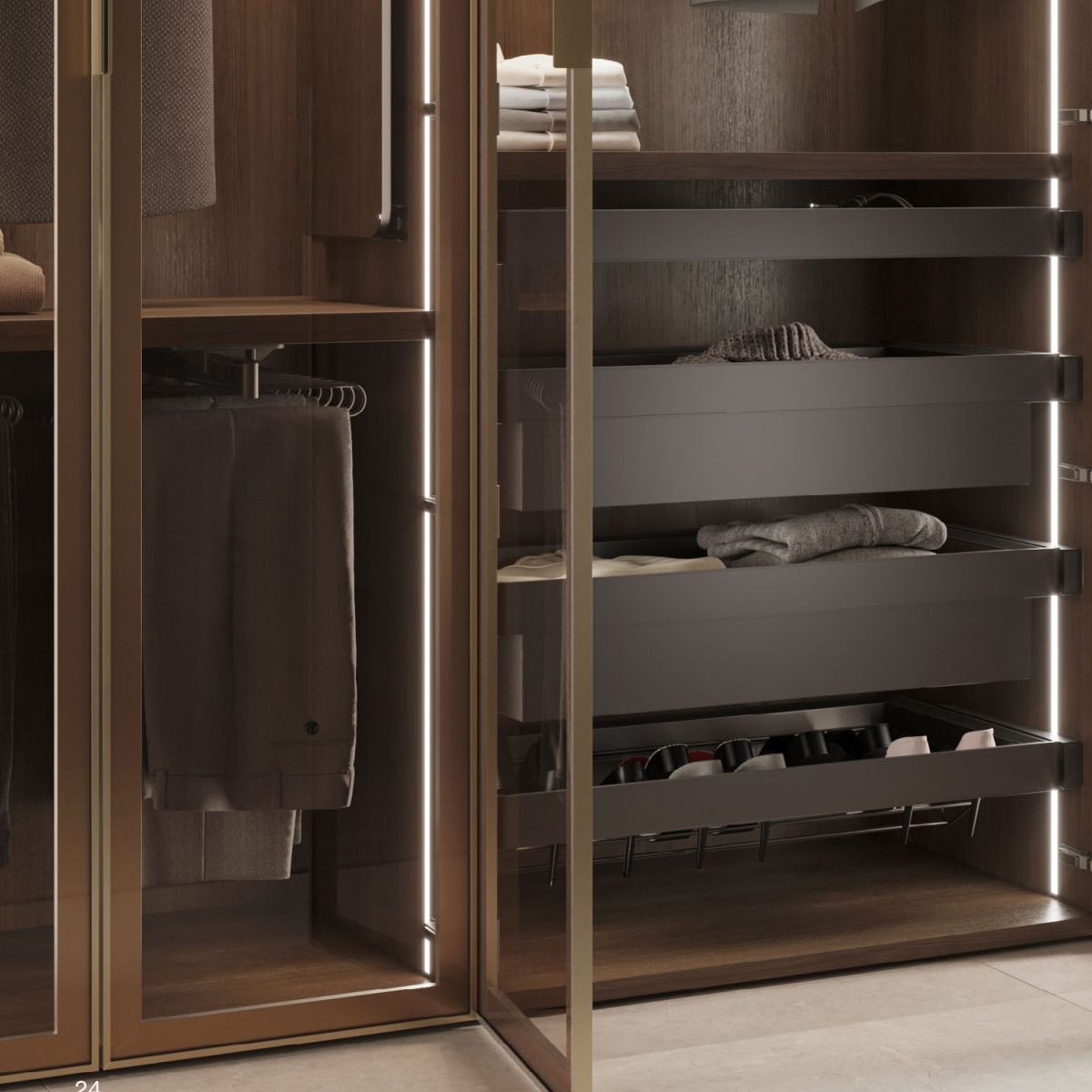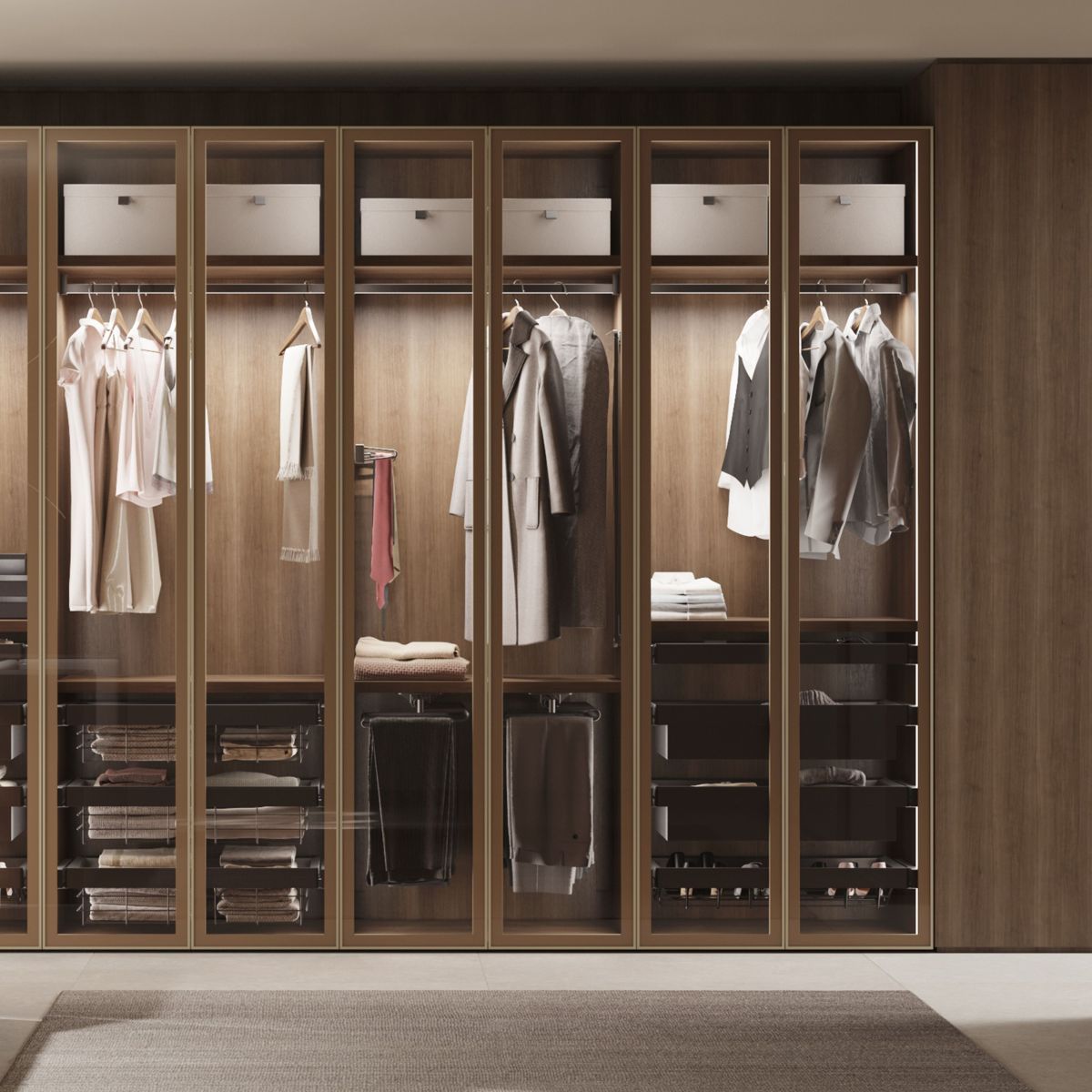 Realizzato in acciaio di alta qualità con finitura titanio (RAL 7039), una struttura resistente ed elegante per ottimizzare lo spazio del tuo armadio.