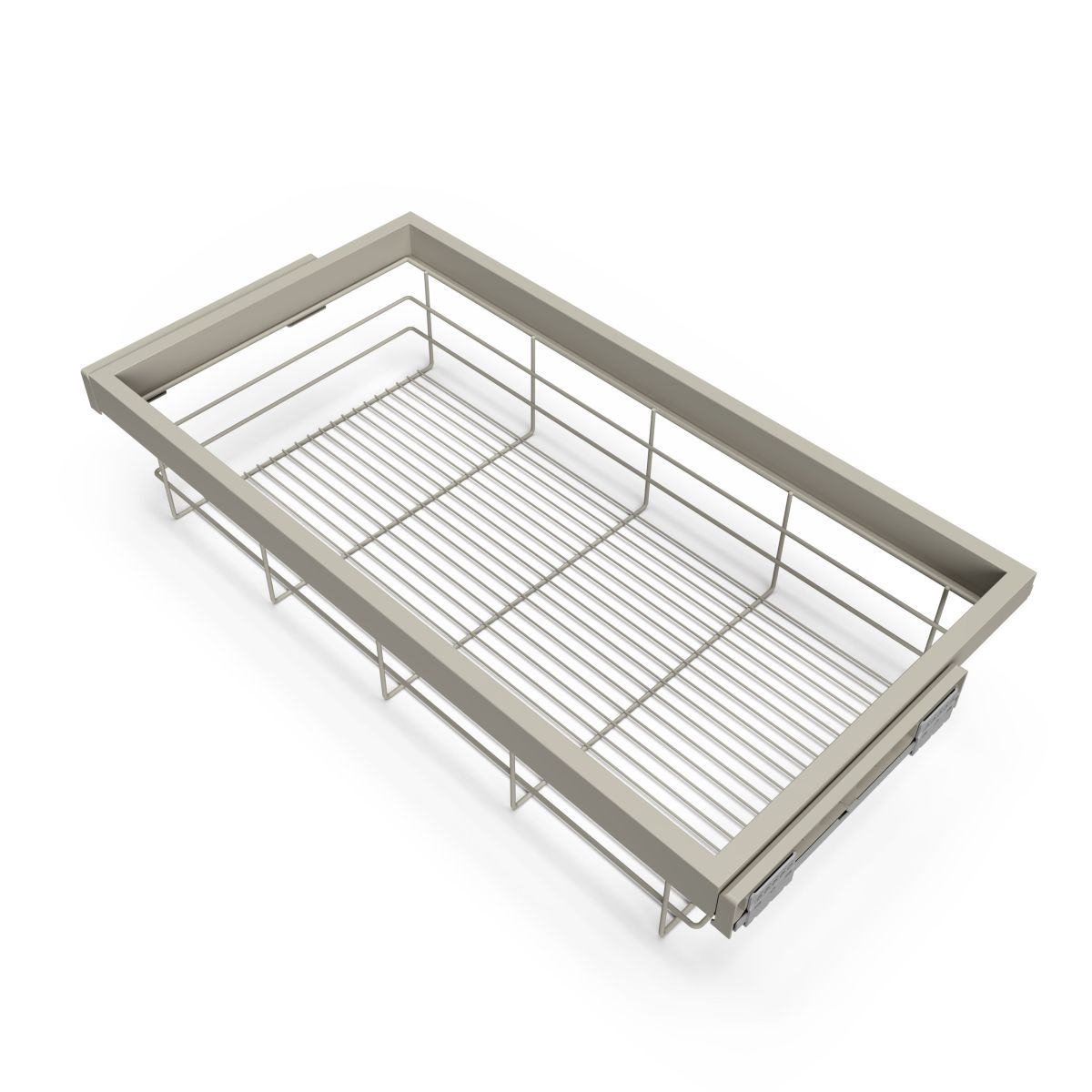 • Telaio con guide soft-close ed estrazione parziale. Realizzato in alluminio e plastica con finitura verniciata in grigio pietra.