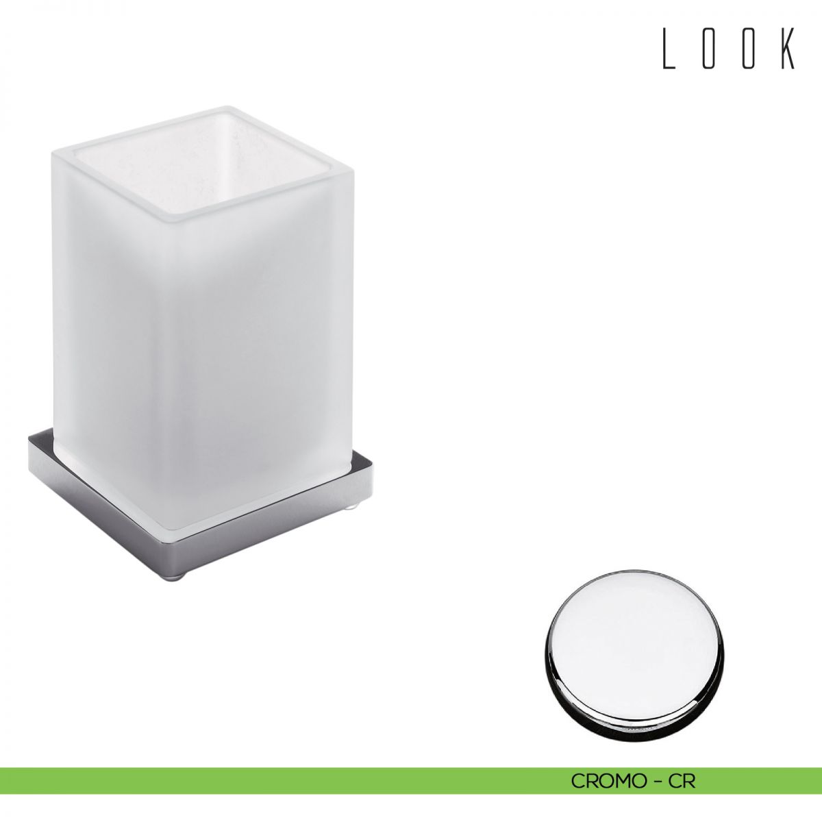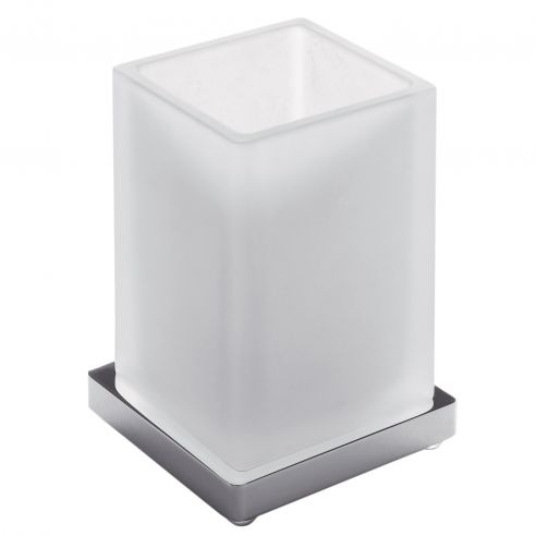 Porta bicchiere da appoggio Colombo Design Look finitura cromo con vetro acidato naturale. Design by Luca Colombo.
