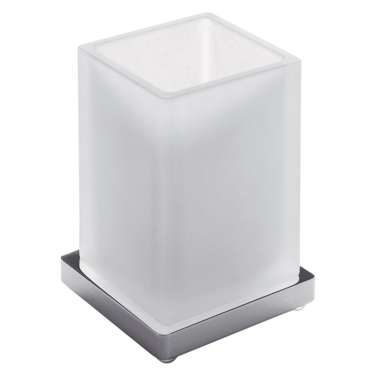 Porta bicchiere da appoggio Colombo Design Look finitura cromo con vetro acidato naturale.