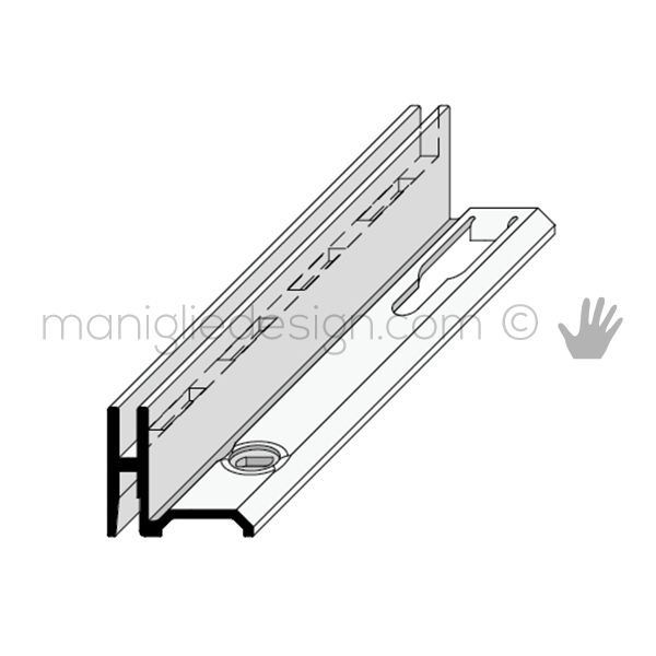 Profilo a cremagliera singola laterale sinistro in alluminio Fit Art art.NB7.SX, per pannelli smontabili con spessore sino a 18-19 mm a filo, asole imbutite di fissaggio passo 222 mm.