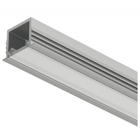 Profilo da incasso in alluminio argento anodizzato per strip LED fino a 8 mm di larghezza Hafele Loox5 modello 1103, con diffusore opale bianco trasmittanza 60-70%, lunghezza 3000 mm.