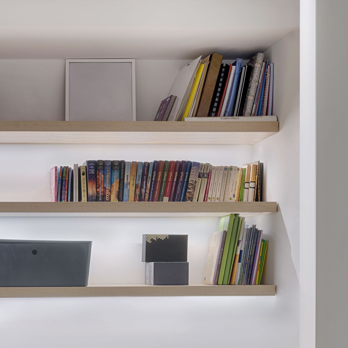 - Staffe per il fissaggio di mensole fissate alla parete e nascoste nel mobile grazie a una lavorazione speciale; a tale scopo sono necessarie due staffe per mensola.