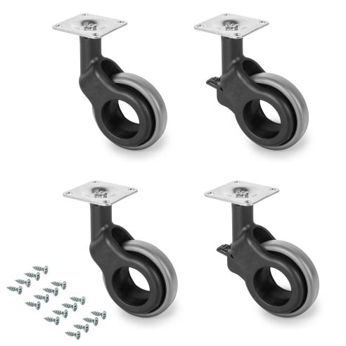 2 ruote senza freno, 2 ruote con freno, viti di fissaggio