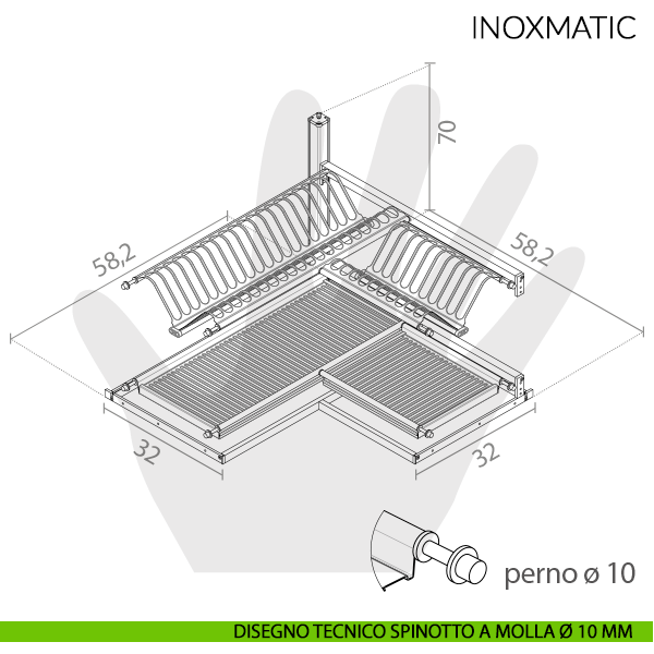 Scolapiatti per mobile angolare in acciaio Inox per pensile Inoxmatic Tecnoinox art.INOXMATIC.ANG.