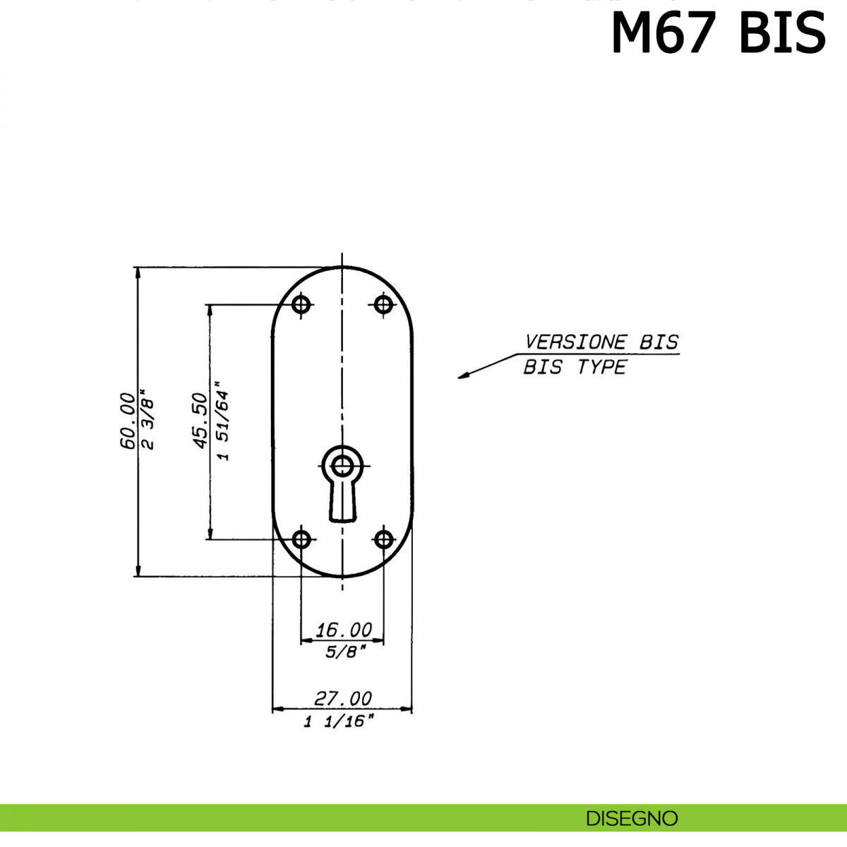 Serratura meccanica a stringa da incastrare per anta Serie M Meroni, versione bis senza alette di fissaggio, tipo chiave tradizionale (non inclusa), articolo Meroni M67, corpo serratura acciaio.