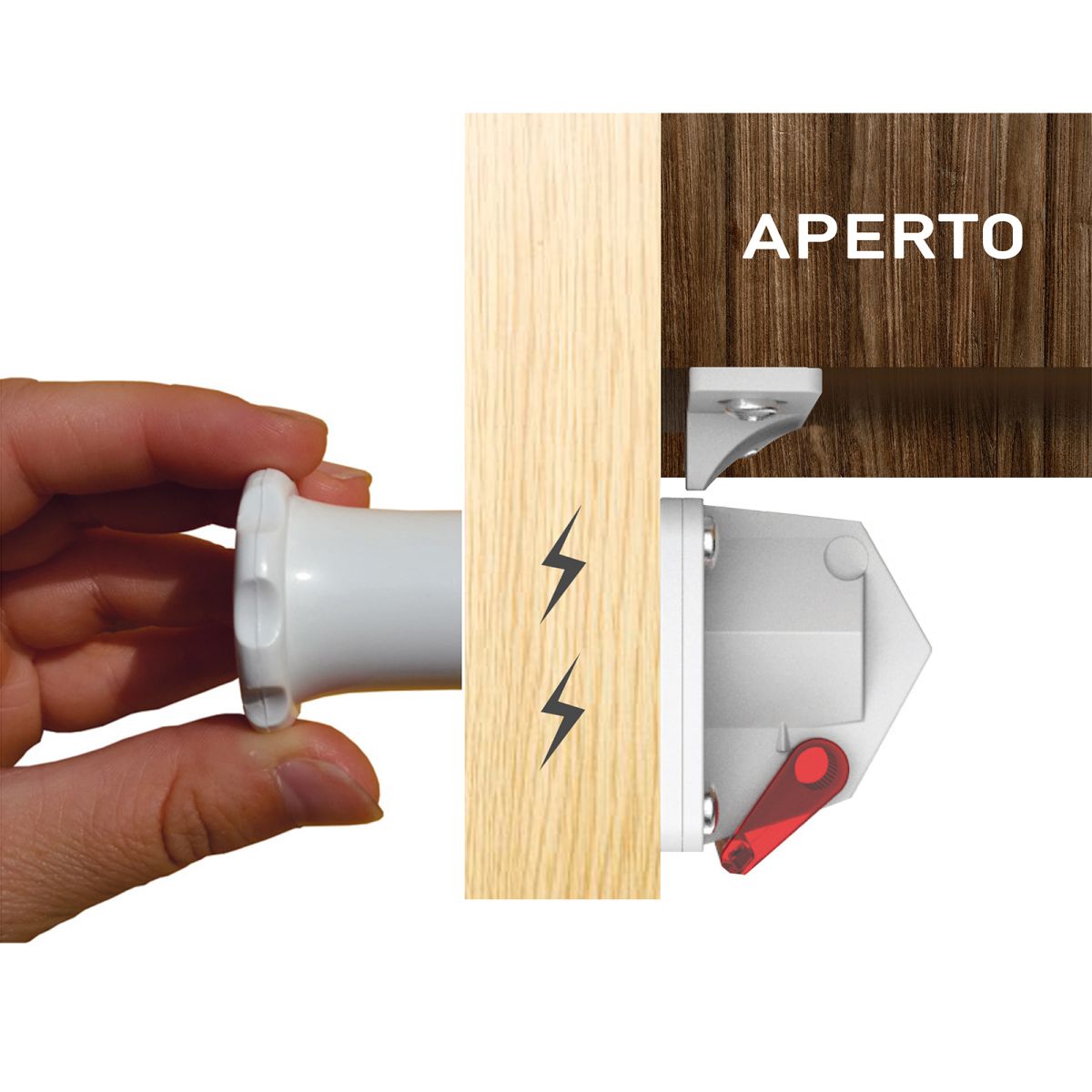Serratura magnetica invisibile Kinder-Lok KYR Securital, per antine e cassetti di spessore da 13 a 25 mm, articolo KYR R 201, finitura bianca.