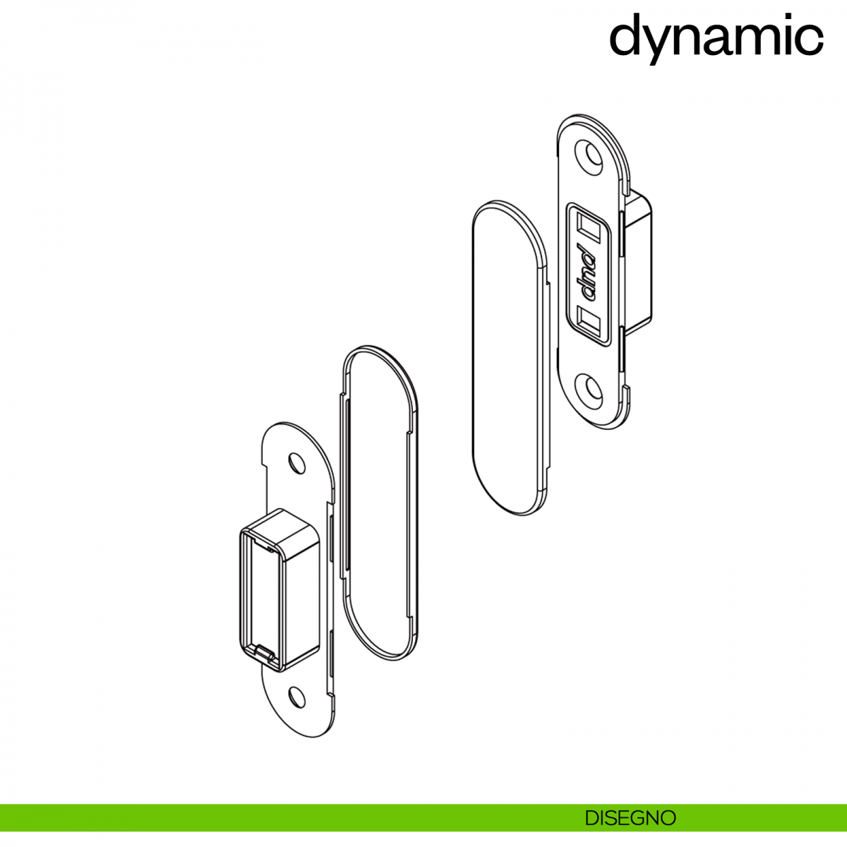 Sistema magnetico per porte a battente Dnd Dynamic frontale 22x82 mm, comprensivo di 2 supporti magnetici e 2 cover.