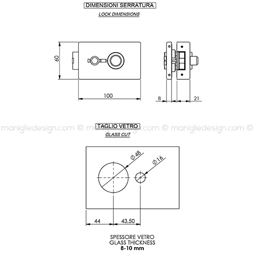 Serratura per porta in vetro con privacy Comit Glass art. SER002PY.