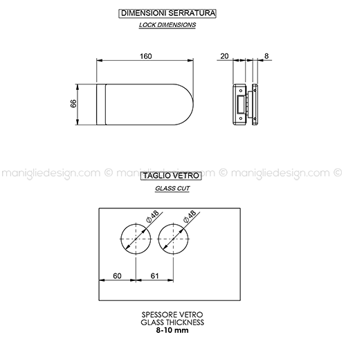 Incontro per doppia porta in vetro Comit Glass art. SER008IN.