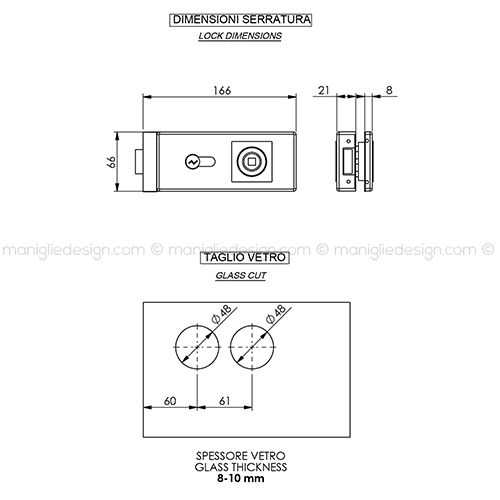 Serratura per porta in vetro foro maniglia con cilindro Comit Glass art. SER009FY.