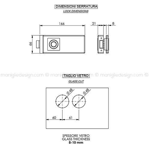 Serratura per porta in vetro foro maniglia Comit Glass art. SER010FM.