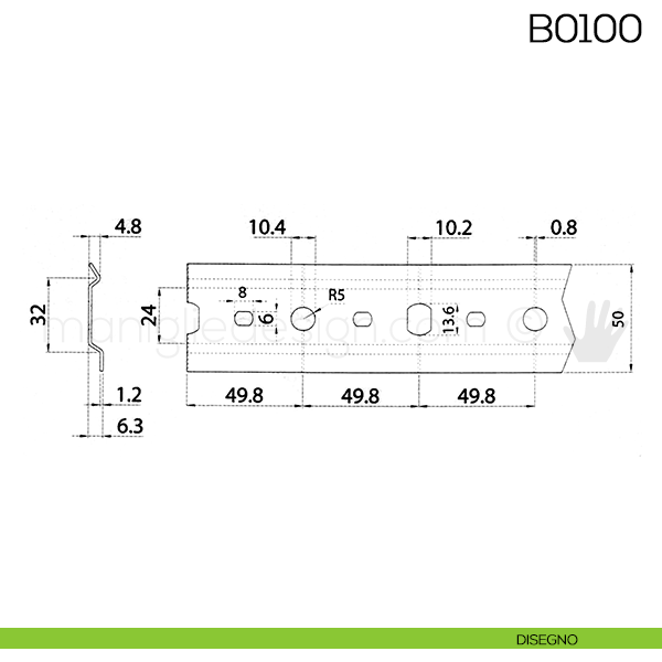 Barra appendipensili metri 2 spessore 1,2 mm larghezza 50 mm Vi.Tel. articolo B0100.
