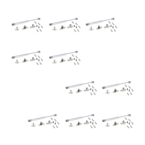 Emuca Lotto di 10 braccetti per porte elevabili H, 8 kg, corsa 100 mm, con agganci, Acciaio e Tecnoplastica, Grigia metallizzata