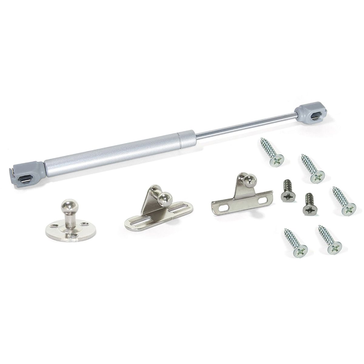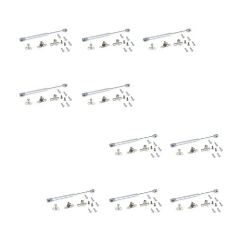 Pistoni per mobili pensili che permettono l'apertura delle ante in legno o con struttura in alluminio. Regolano il sollevamento ammortizzato dell'anta del pensile nei mobili di casa. Sono imballati individualmente in buste con istruzioni di montaggio. Ogni busta contiene un pistone, un fermo per il fianco, un fermo per anta in legno, un fermo per anta in alluminio e viti necessarie.