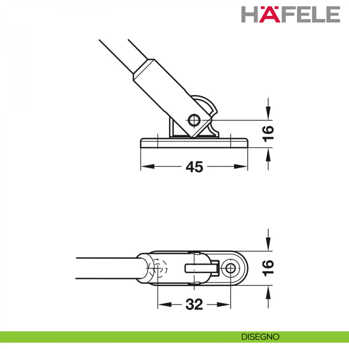 Supporto per anta a ribalta in legno verso l'alto Hafele con snodo angolo di apertura 90°, utilizzabile sia su lato destro che su lato sinistro.