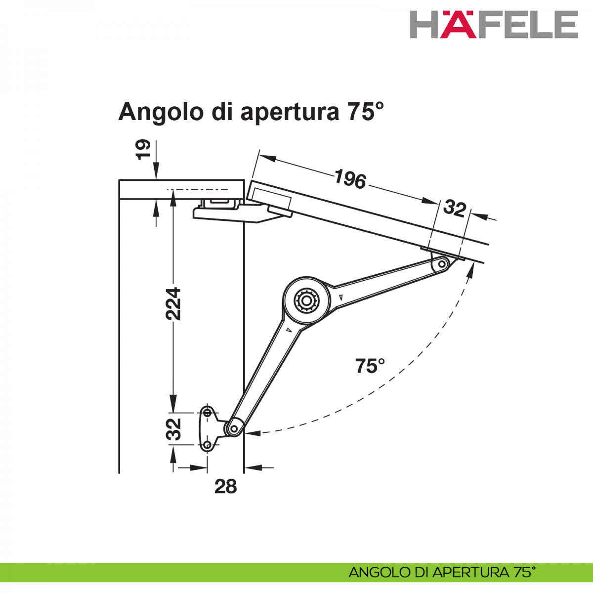 Supporto per anta a ribalta Kessebohmer Huwil Hafele Duo forte distanza dal bordo 28 mm