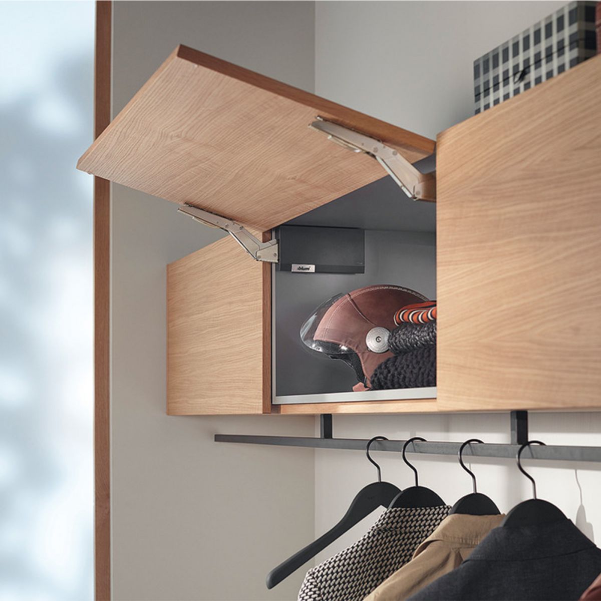 Guarnitura per anta a ribalta Blum Aventos HK-Top fissaggio viti per truciolare, per ante in legno o telai in alluminio larghi e stretti.