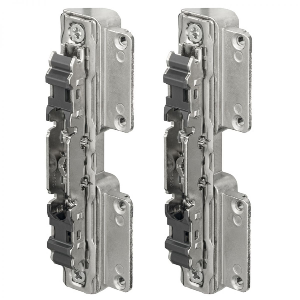 Set attacco frontale Blum 20S42T1, per guarnitura ante a ribalta Aventos, per ante sottili spessore da 8 a 14 mm, fissaggio EXPANDO T per i materiali più diversi, nichelato.