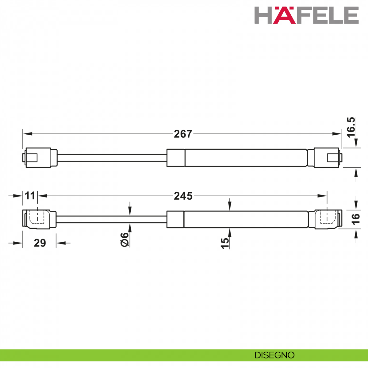 Pistone a gas Hafele per ante a ribalta in legno o con telaio in alluminio