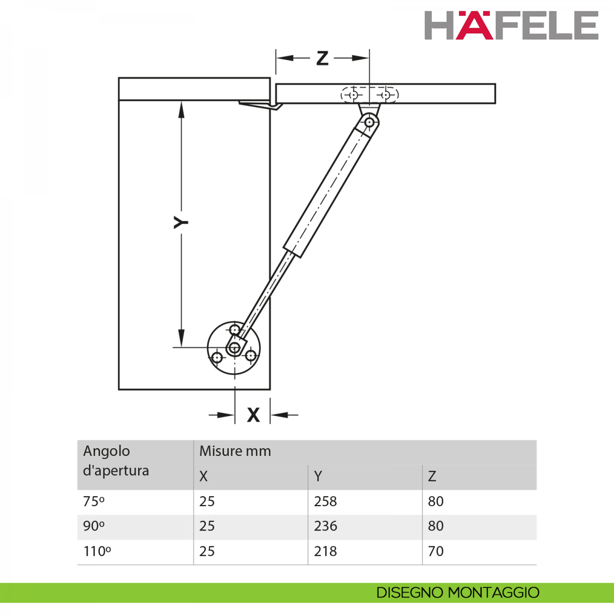 Pistone a Gas Hafele per Ante a Ribalta in Legno o con Telaio in Alluminio con Angolo di Apertura 75°/90°/110°
