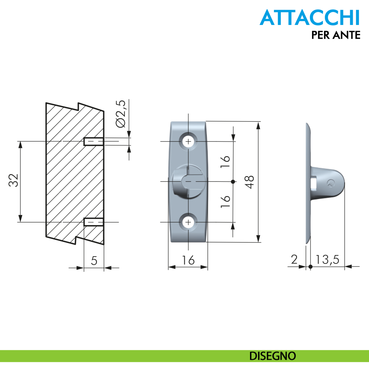 - Interasse fori: 32 mm