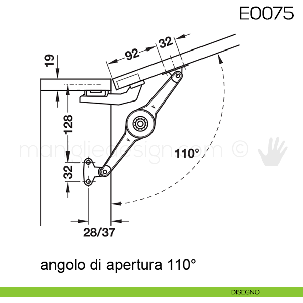 Snodi Huwil per sportelli a ribalta articolo E0075.