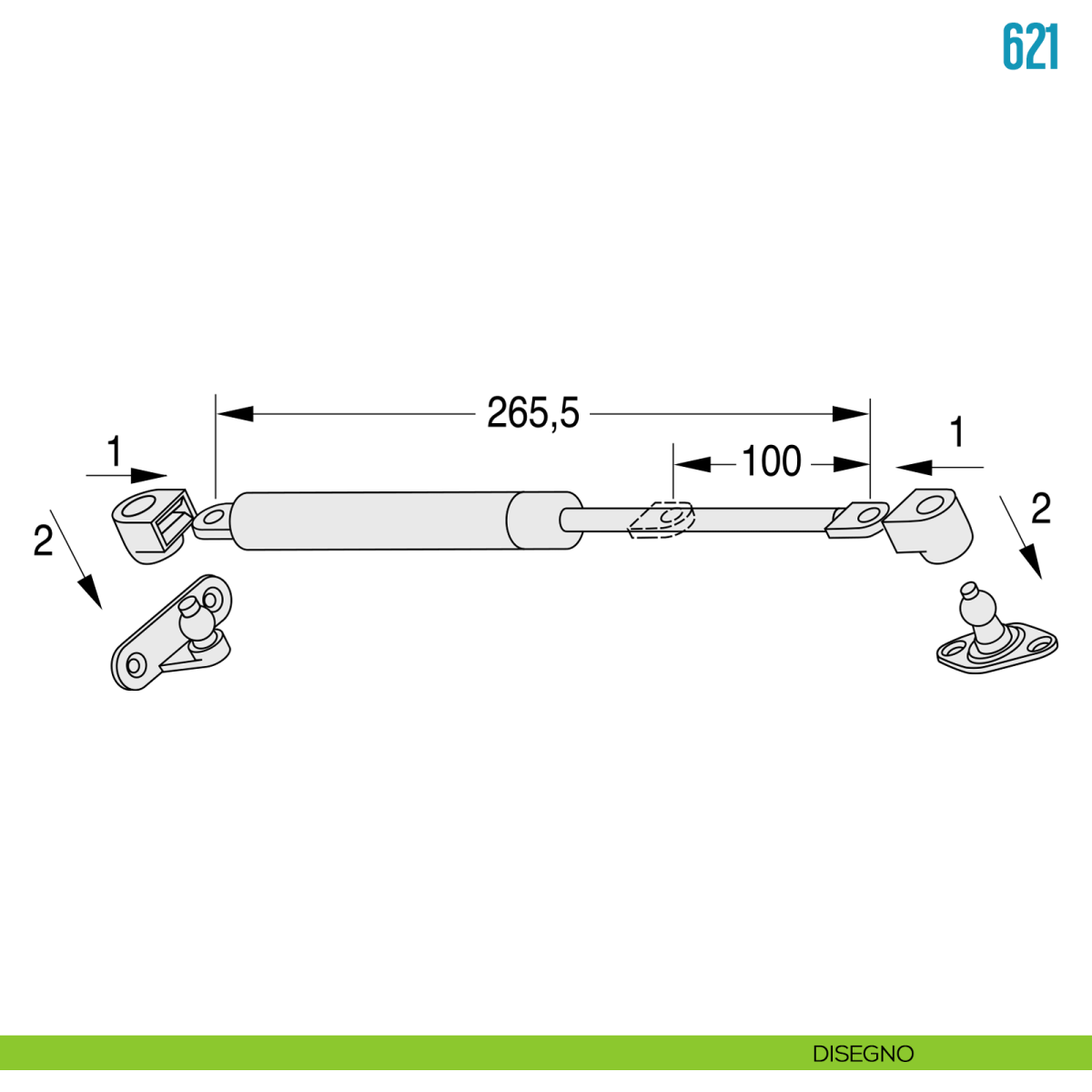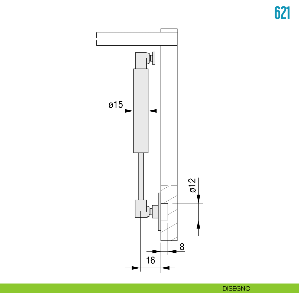 Pistone a gas per anta a ribalta verso l'alto 150 N Ceam 621.