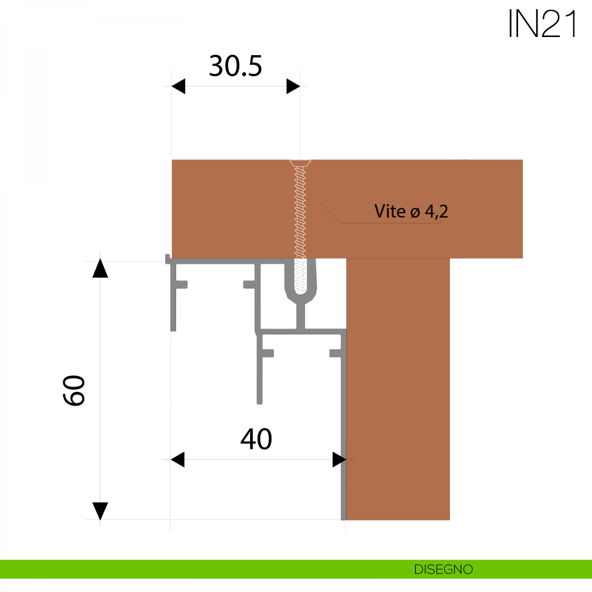- 1 pezzo binario inferiore IN21 da 3000 mm