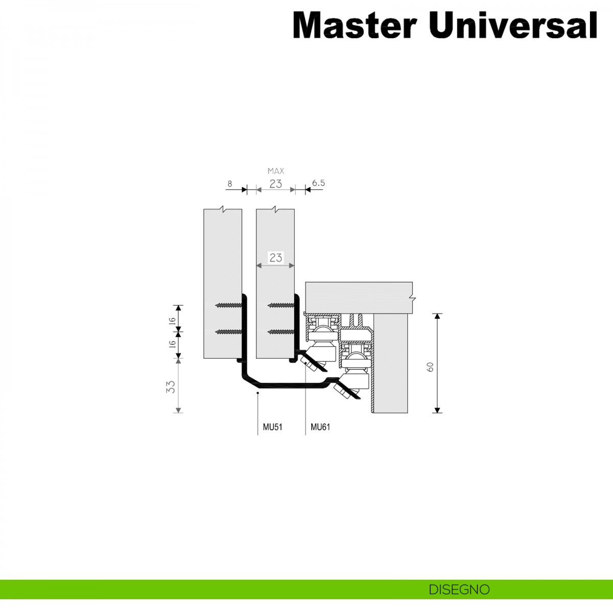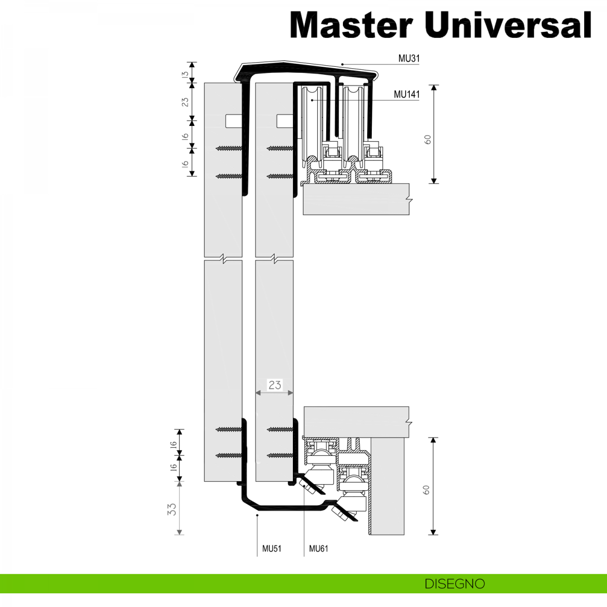 - Campo di applicazione: Scorrevole per armadi in legno con ante sovrapposte