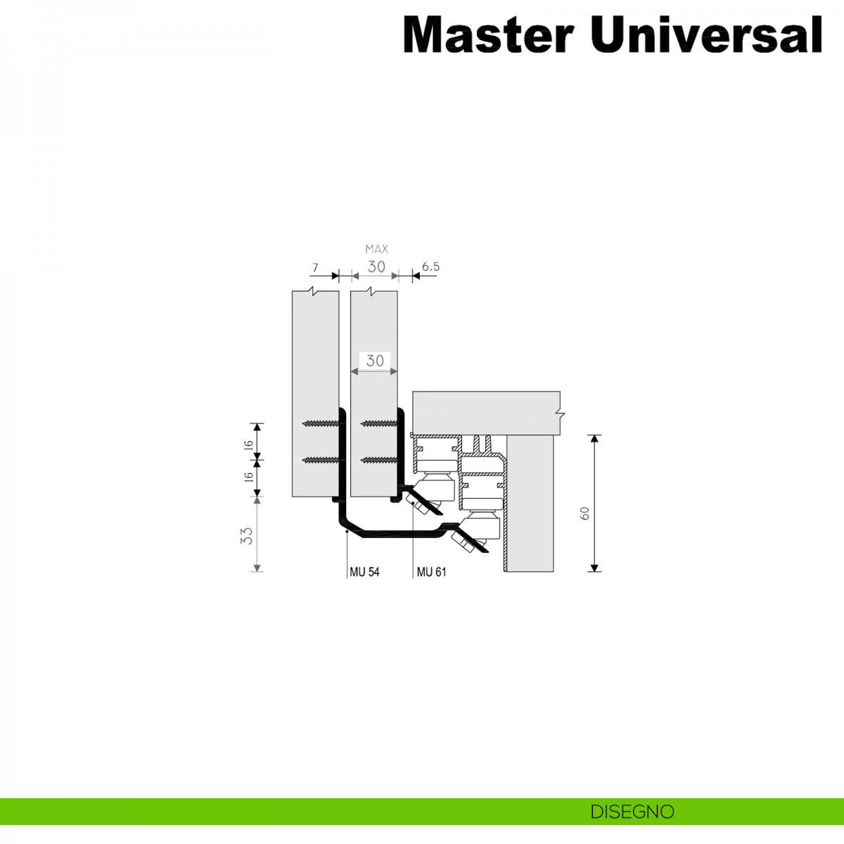 - Campo di applicazione: Scorrevole per armadi in legno con ante sovrapposte