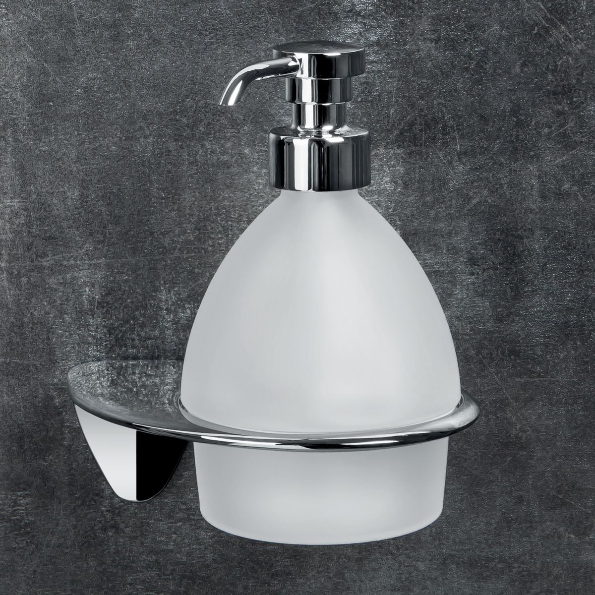 Porta scopino sospeso Colombo Design Khala finitura cromo con vetro acidato naturale.