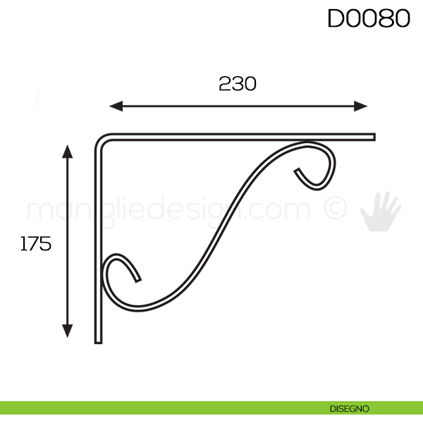 Reggimensola in ferro battuto per mensole in legno Vi.Tel. D0080 mm 175x230.