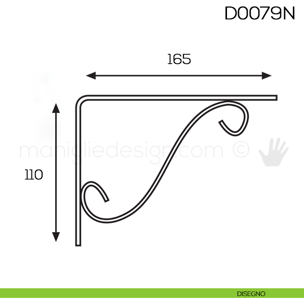Reggimensola in ferro nero per mensole in legno Vi.Tel. D0079N mm 110x165.