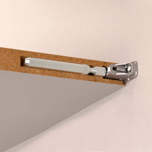 Reggimensola a scomparsa Ferramenta Livenza serie Triade Slim per mensole in legno con spessori a partire da 18 mm.