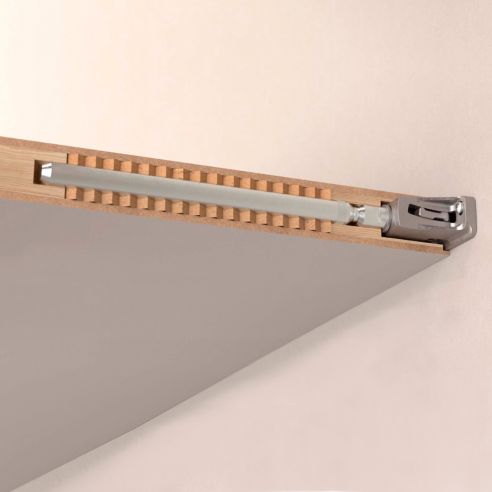 Reggimensola a scomparsa Ferramenta Livenza serie Triade Slim per mensole in legno con spessori a partire da 18 mm.