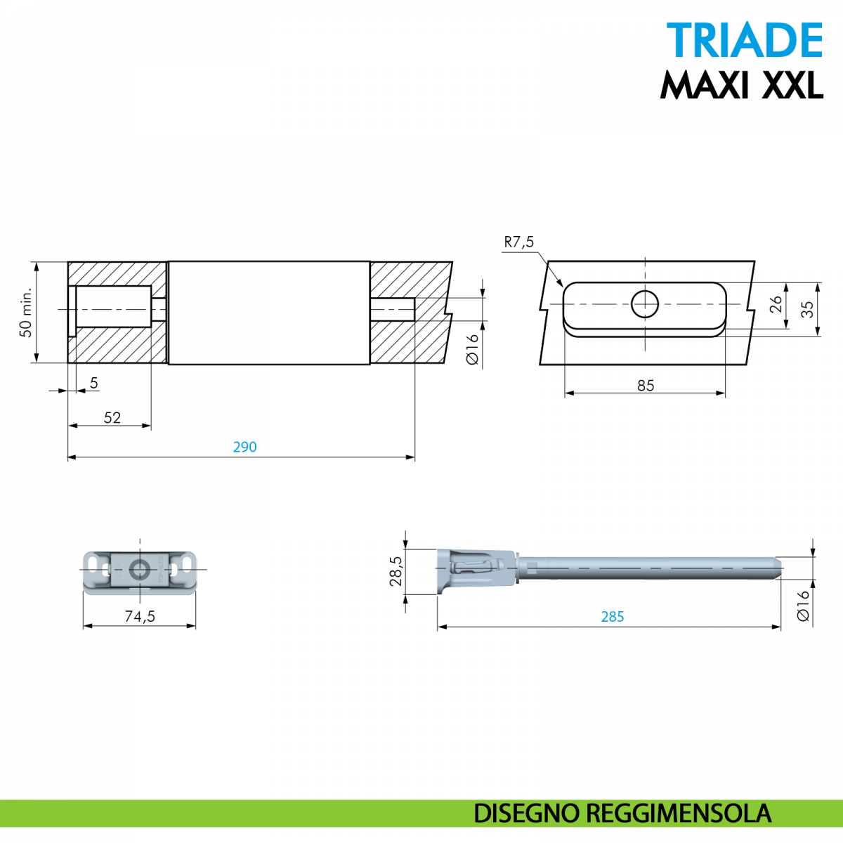 Il serie Triade Maxi XXL viene fornita completa di piastra di supporto.