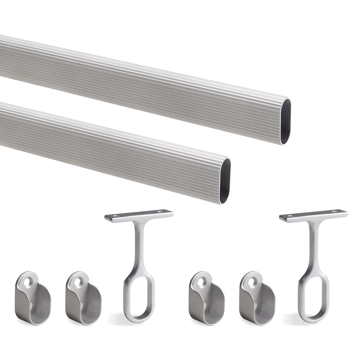 Emuca Kit tubo per armadio 30x15 mm alluminio, 1,15 m, Anodizzato opaco, Alluminio e Zama