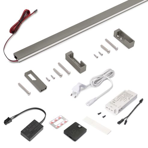 Emuca Kit barra per armadio Luxe, striscia LED 4,5x8 Neonlynx V, sensore di movimento RF Smart e convertitore Smart (24V DC), lu
